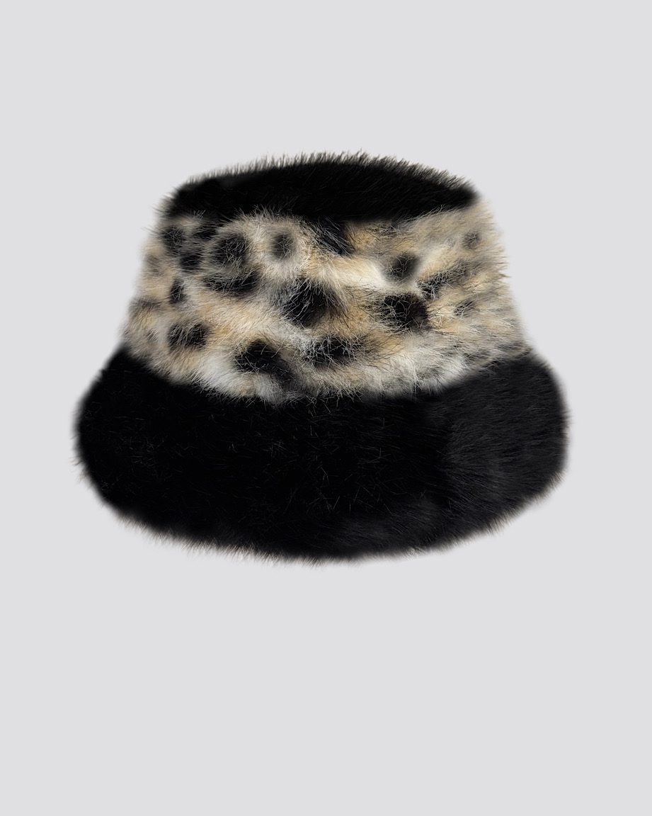 Cheetah Faux Fur Bucket Hat Black