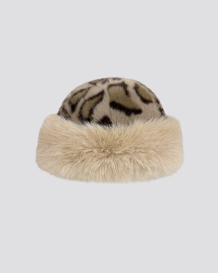 Faux Fur Leopard Fitted Cap Khaki